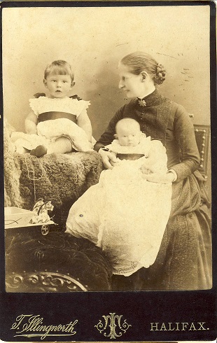 In June 2015, I purchased on Ebay this picture of Ellen Caw and two of her children. Ellen was the eldest daughter of William Huntriss of Halifax. I was the only bidder