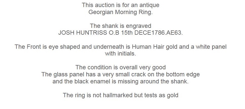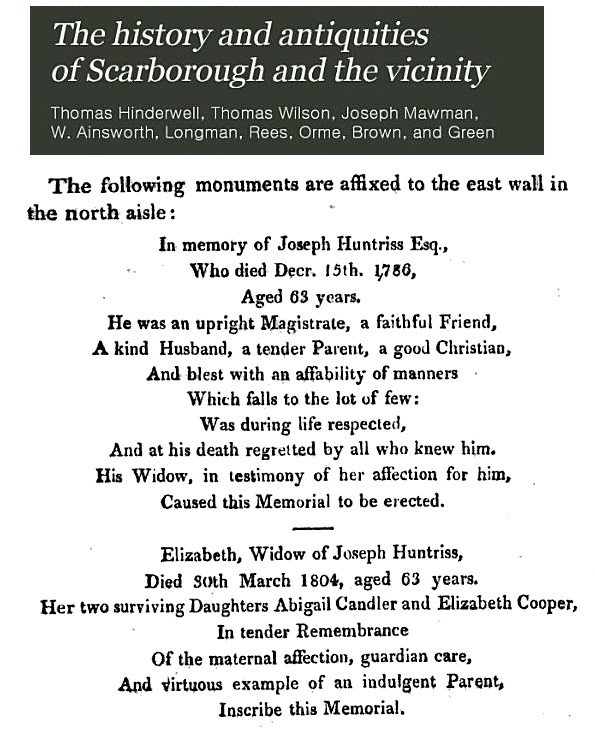 This mourning ring came up for auction recently on Ebay, and was sold for £127. Josh in this case is short for Joseph; Joseph Huntriss was a shipowner in Scarborough in the 18th Century. , and there is a memorial plaque to him and his wife in St Mary's Church in Scarborough.
