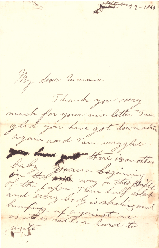 Excuse beginning in this way on this side of the paper I am half asleep and everybody is shaking and bumping against me so it is rather hard to write.