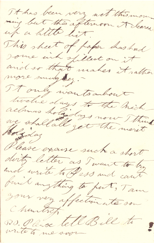 Please excuse such a short letter as I want to try and write to Jess and can't find anything to put. I am your very affectionate son