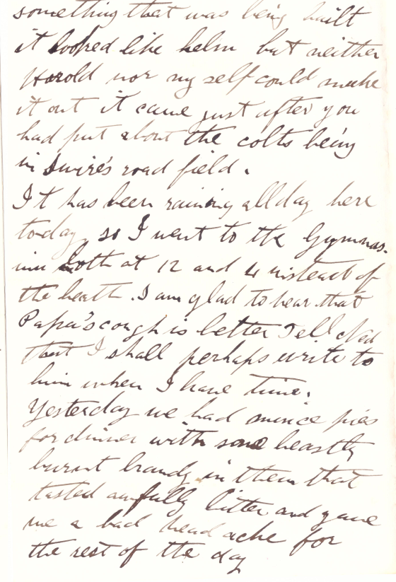 Yesterday we had mince pies for dinner with some beastly burnt brandy in them that tasted awfully bitter and gave me a bad headache for the rest of the day.