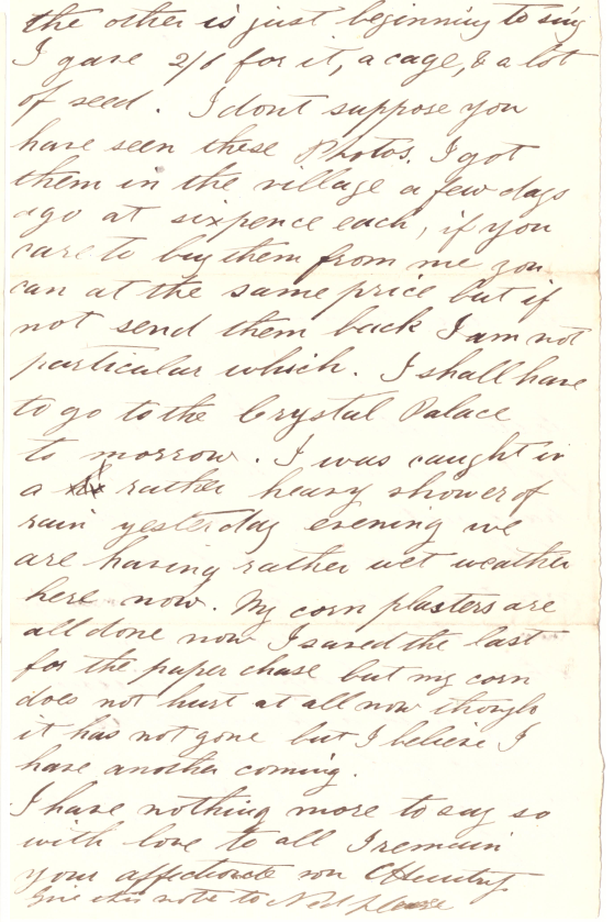 I have nothing more tosay so with love to all I remain your affectionate son.