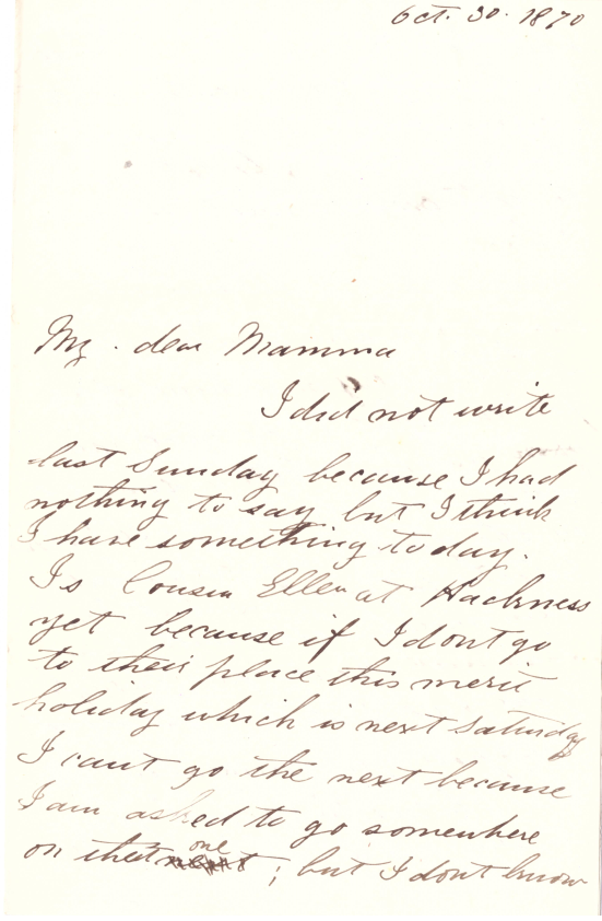 Is cousin Ellen at Hackness yet because if I don't go to their place this merit holiday which is next Saturday. I can't go the next because I am asked to go somwhere on that one; but I don't know ...