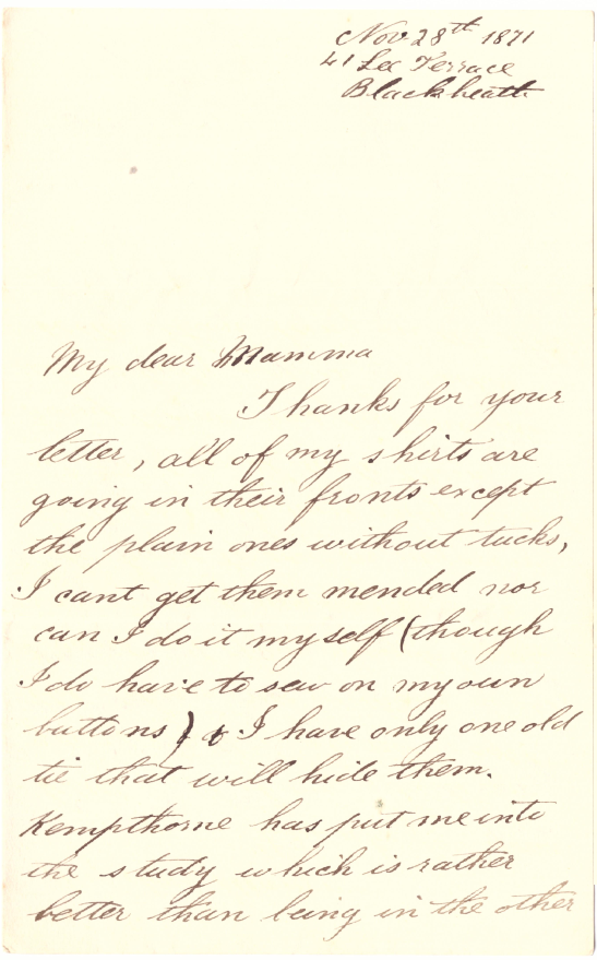 ... room, only he often expects us to do without fires which is not very nice this weather.