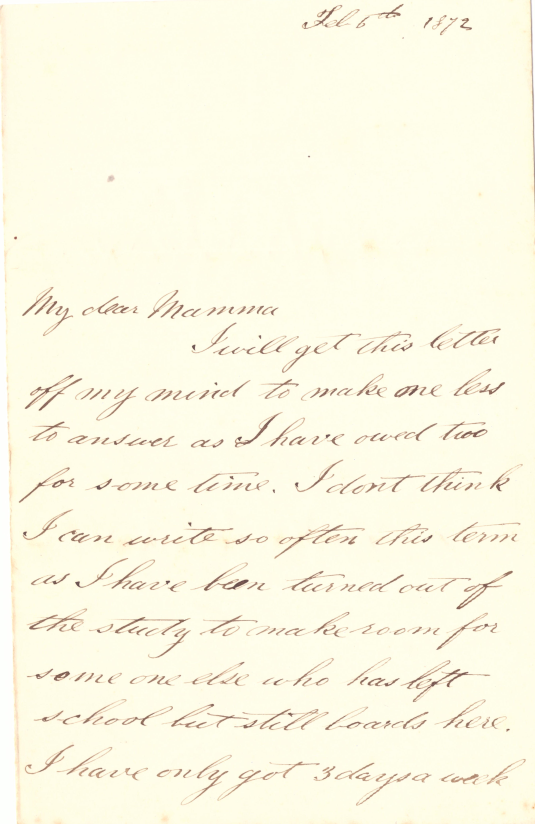 I don't think I can write so often this term as I have been turned out of the study to make room for someone else who has left school but still boards here.