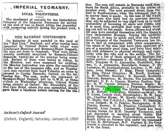 John did not opt for the easy life - in 1900 he volunteered for the Imperial Yeomanry.