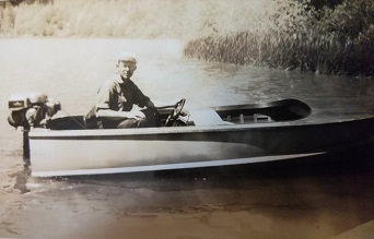 Gail Bolton in John's racing boat