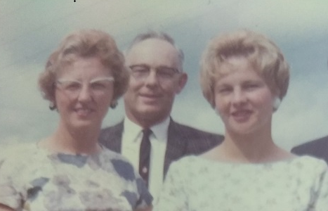 John Huntriss with Winnie, his wife, and elder daughter Gail
