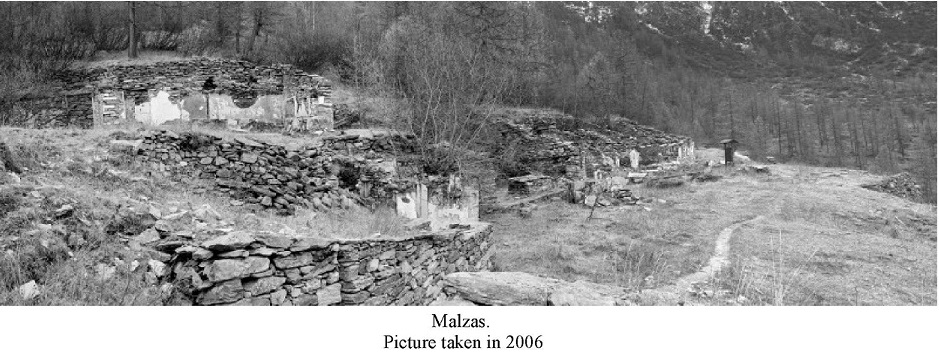 "In Val Germanasca, passing through the villages of Pleinet, Sapatelle Malzas, it is possible to understand the difficult conditions of life of the miners, in winter completely isolated in their homes. The mines of Malzas are among the oldest in the area; still visible are the ruins of a building next to Huntriss gallery."